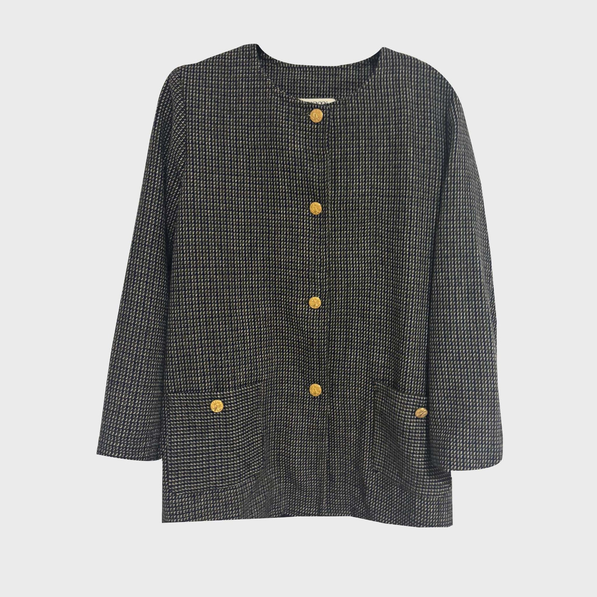 Abrigo manga larga con bolsillos frontales y botones, Cuello reina.