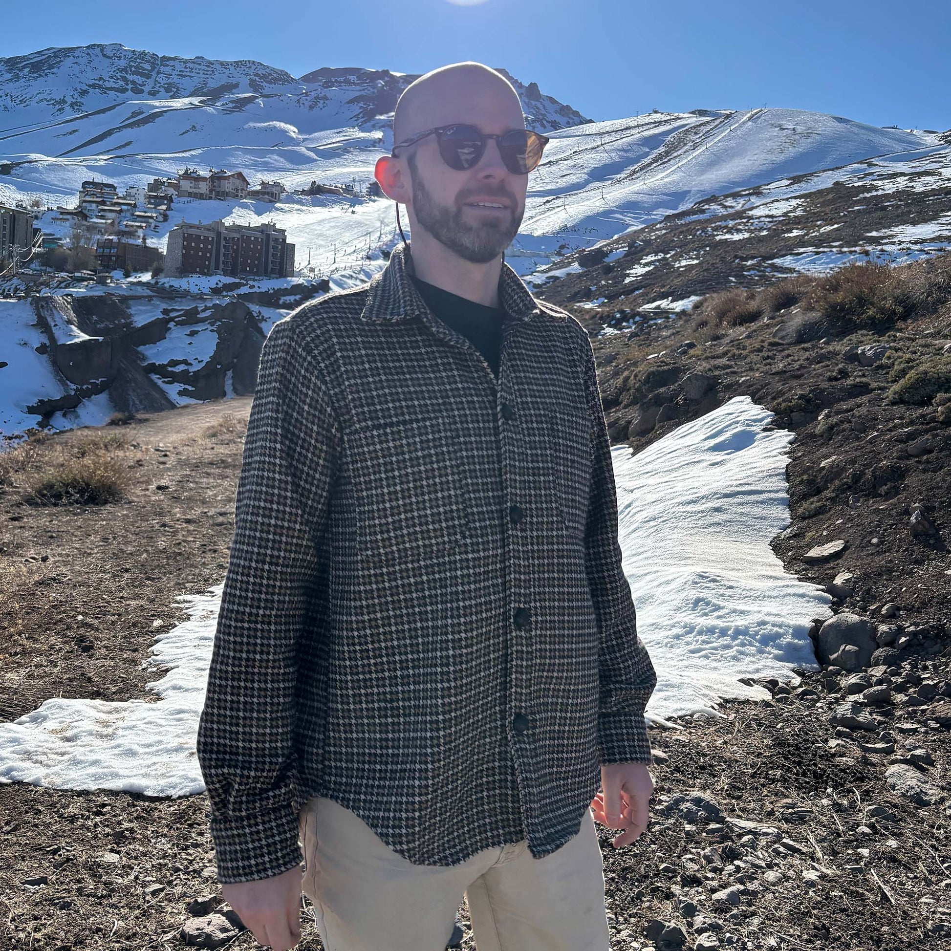Sobrecamisa manga larga. Tiene 5 botones negros en el cuerpo principal y un botón en cada manga.